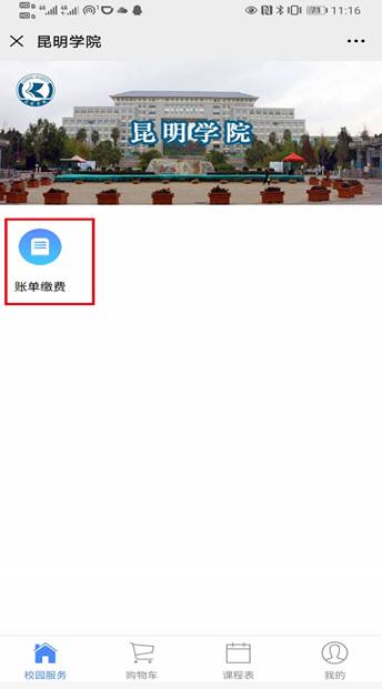 4.登錄進入繳費平台後,點擊“賬單繳費”,請核對姓名、專業信息無誤後再進行繳費。也可以點擊右下角“我的”查看姓名。